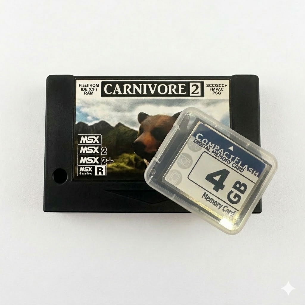 With its impressive features and versatile functionality, the RBSC Carnivore2 cartridge offers a seamless blend of performance and convenience. Equipped with an 8MB FlashROM memory, it provides lightning-fast storage and loading capabilities for games and programs. The inclusion of a Compact Flash (CF) card storage interface, along with a 4GB card, ensures space for your digital MSX library.